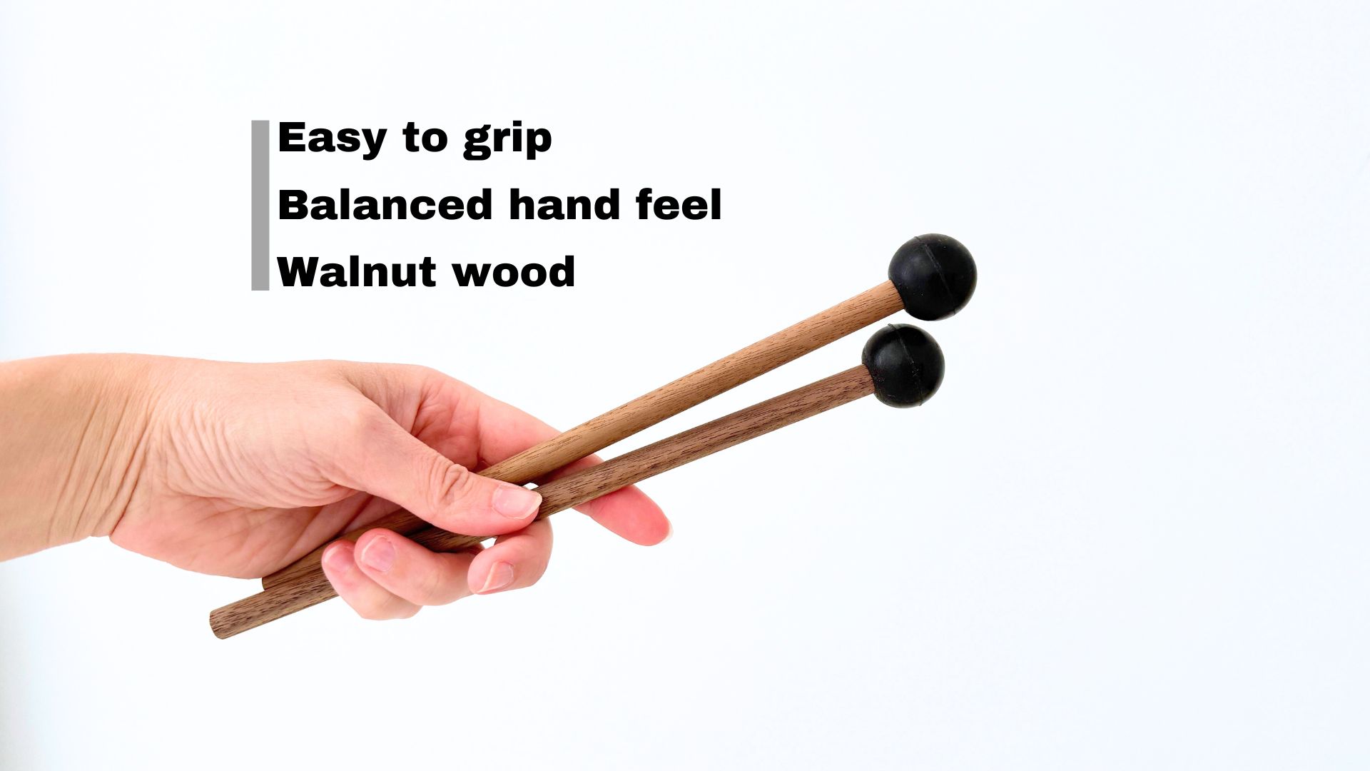 These mallets were designed by tongue drum players through testing and refinement to achieve the right balance of weight, length, and firmness for a clear and resonant sound.