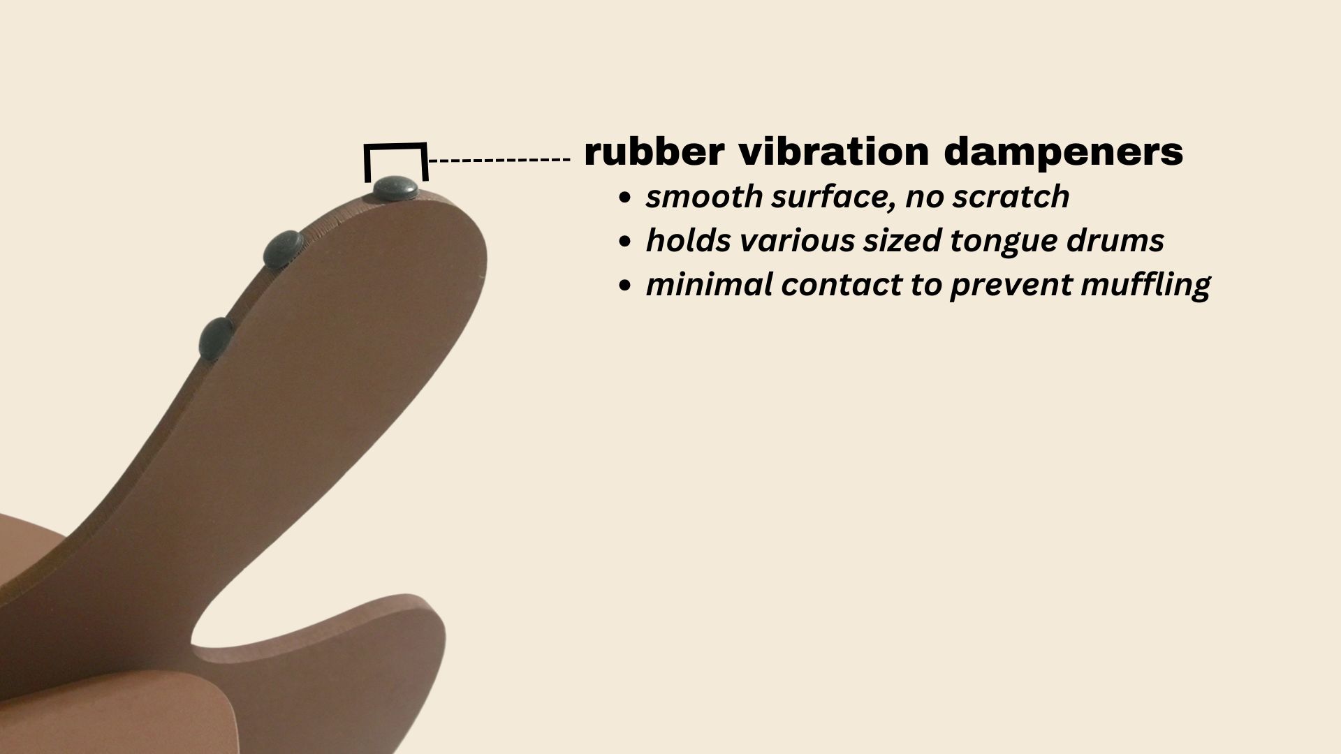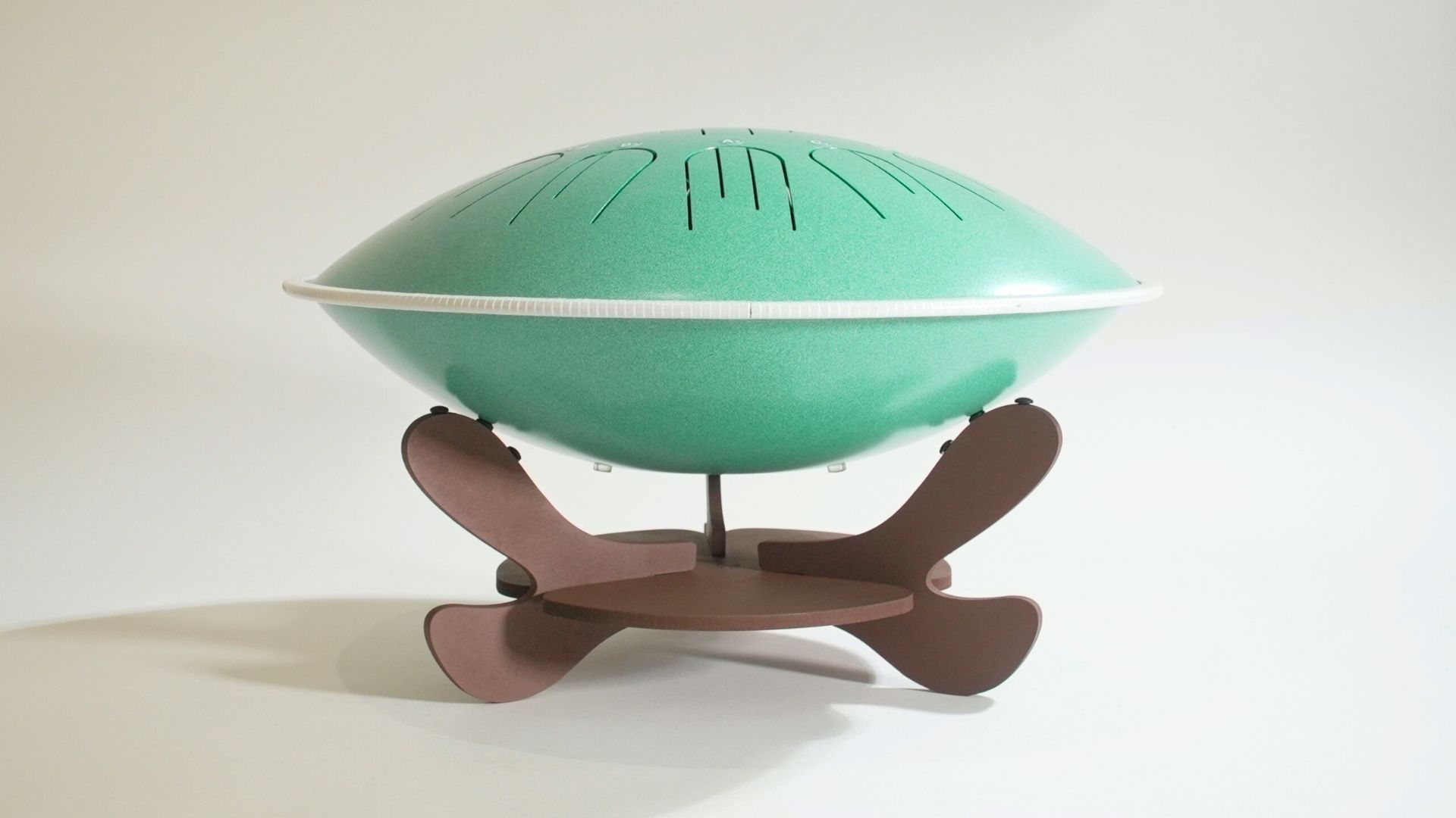 This stand fits tongue drums from 11 to 15 inches in diameter and can also support larger tongue drums and some handpans.
